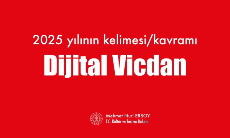 Kültür ve Turizm Bakanı Mehmet Nuri Ersoy, Türk Dil Kurumu (TDK) tarafından halkın katılımıyla belirlenen 2025 yılının kelimesinin “dijital vicdan” olduğunu açıkladı. Yaklaşık 300 bin oyun kullanıldığı süreç sonunda seçilen kavram, modern dünyada bireysel sorumluluğun dijital platformlardaki dönüşümüne dikkat çekiyor.
