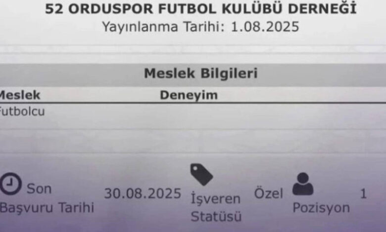 TFF 3. Lig ekiplerinden 52 Orduspor FK, Türkiye İş Kurumu (İŞKUR) üzerinden futbolcu arayışıyla sosyal medyada gündeme oturdu. Kulübün 1 Ağustos 2025 tarihinde İŞKUR internet sitesi üzerinden verdiği futbolcu ilanı, kısa sürede dikkat çekti ve viral hale geldi.