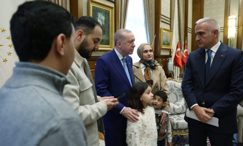 Cumhurbaşkanı Recep Tayyip Erdoğan, İsrail’in Gazze’ye yönelik saldırılarının simge isimlerinden biri haline gelen 6 yaşındaki Hind Rajab’ın ailesini ve akrabalarını Cumhurbaşkanlığı Külliyesi’nde kabul etti. Kabulde Kültür ve Turizm Bakanı Mehmet Nuri Ersoy da hazır bulundu.