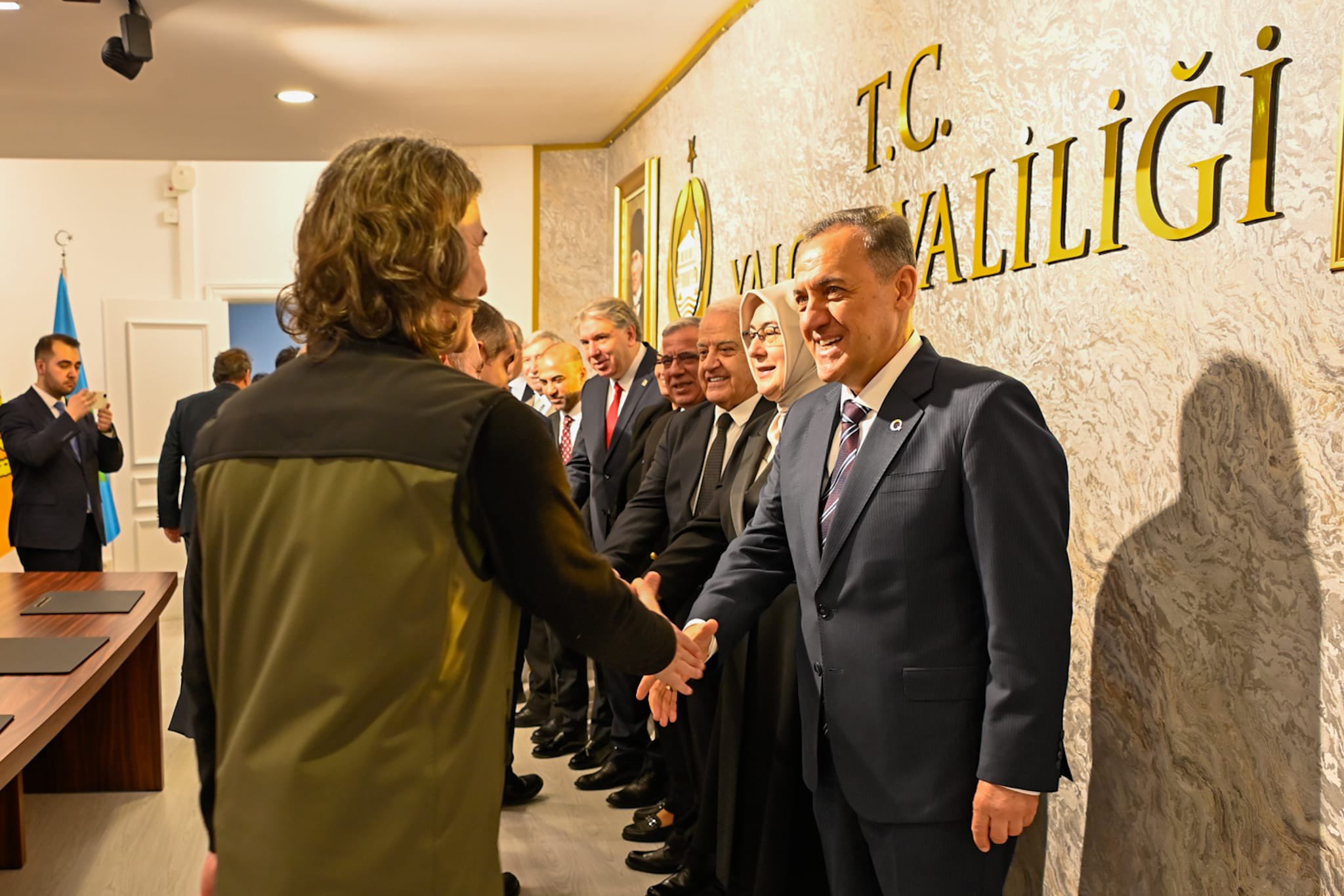 Kamu kurumlarının yöneticileri, personelleri ve vatandaşların da yoğun ilgi gösterdiği programda Vali Usta, katılımcıların bayramını tek tek kutladı.